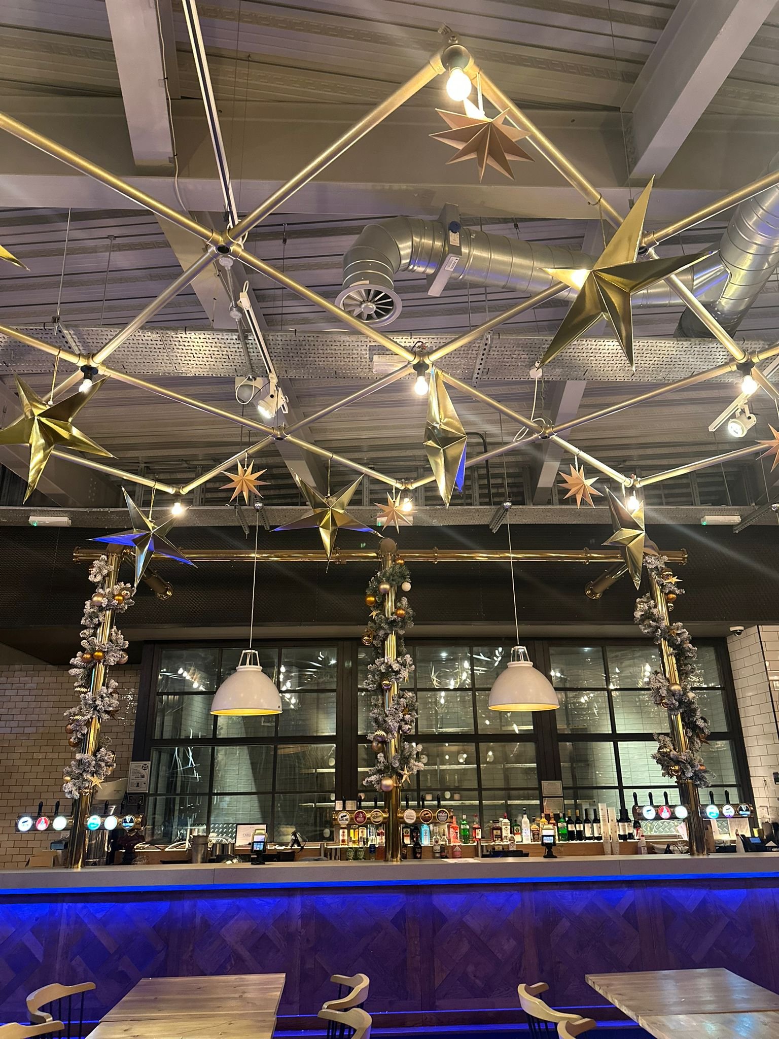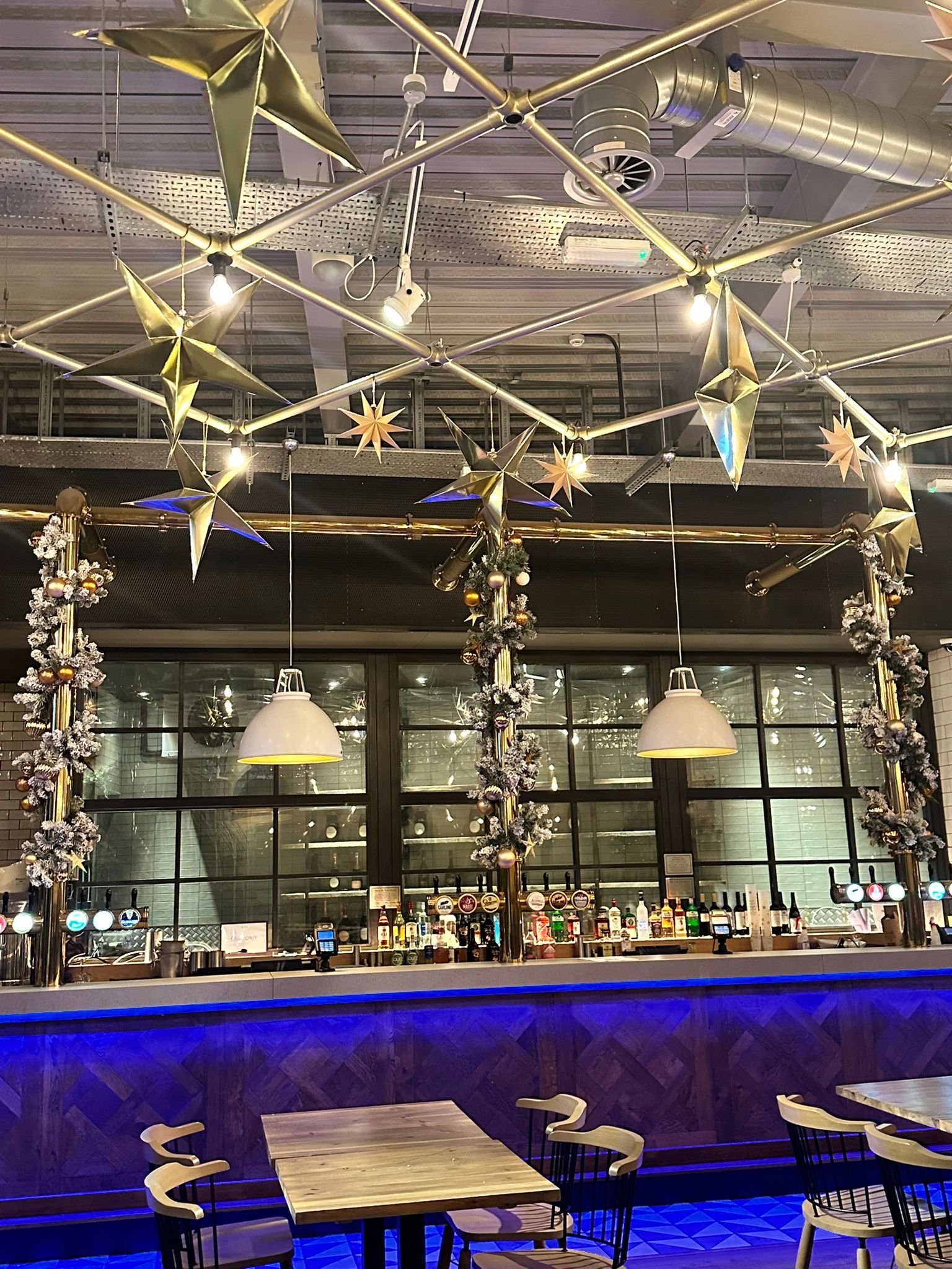 We designed and installed elegant Christmas decor schemes throughout, incorporating statement trees, festive centrepieces, atmospheric lighting, and refined seasonal styling that elevated each space while maintaining a consistent festive identity across the venue. Working at scale, our team carefully balanced practicality with impact, delivering high-quality finishes suitable for high-footfall hospitality environments.